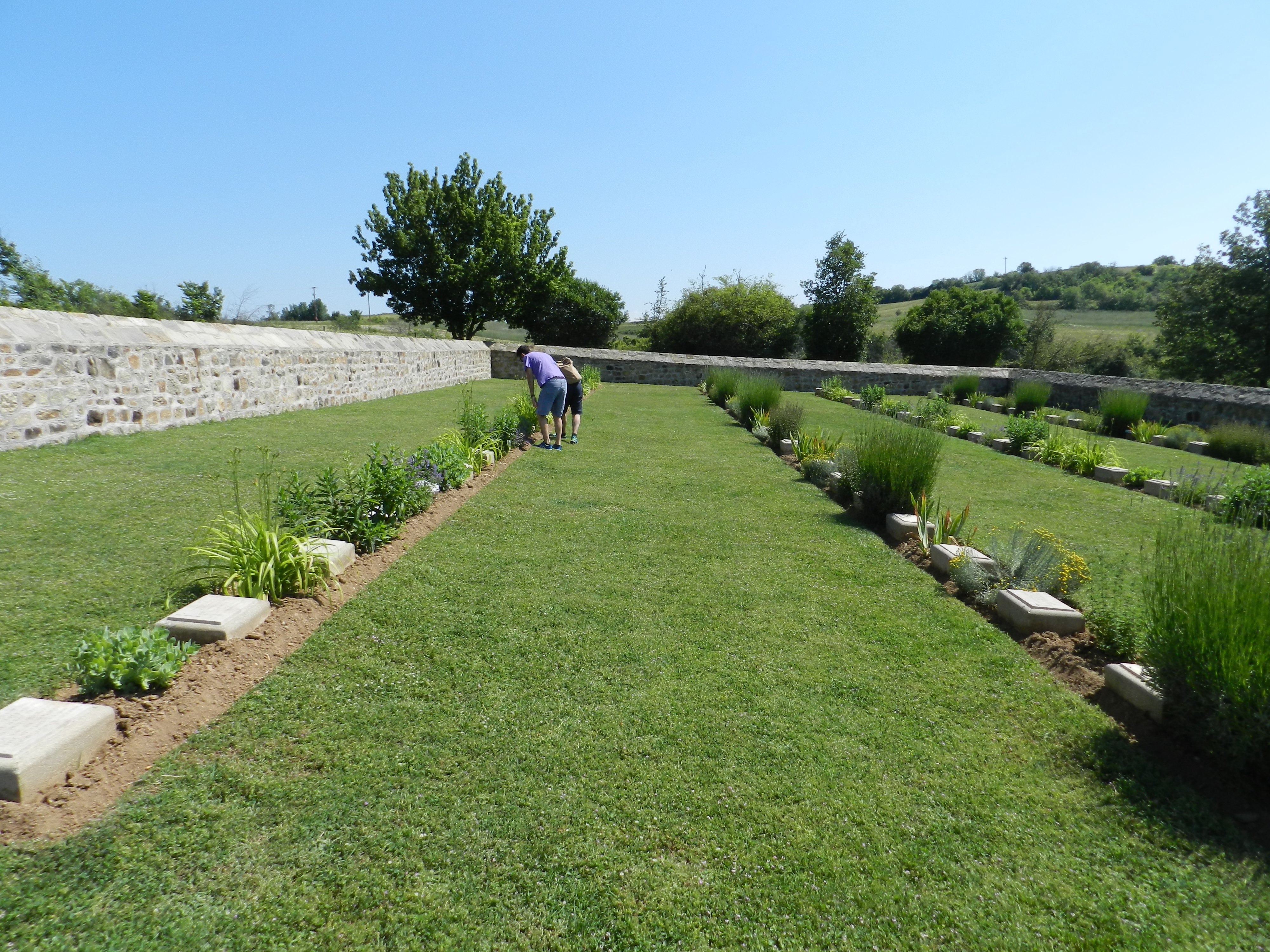 Εκεί, σε μια ειδυλλιακή καταπράσινη τοποθεσία, σε υψόμετρο 600 μέτρων, αναπαύονται στην απόλυτη σιωπή 300 περίπου άνδρες, κυρίως Βρετανοί στρατιώτες και αξιωματικοί, αλλά και 16 Βούλγαροι και τέσσερις Έλληνες πολίτες. Όλοι τους σκοτώθηκαν στις φονικές μάχες του Μακεδονικού μετώπου, στην περιοχή του Στρυμόνα, κατά το 1916-1918. Ανάμεσά τους και οκτώ άνδρες του «Μακεδονικού εκστρατευτικού σώματος ημιονηγών», μουλάρηδες δηλαδή. Οι έξι από αυτούς Κύπριοι. Οι νεαροί επισκέπτες από την Κύπρο, έσκυψαν με συγκίνηση πάνω στα μικρά ταφικά μνημεία, αναζητώντας τους συμπατριώτες τους που σκοτώθηκαν στην περιοχή υπηρετώντας στον βρετανικό στρατό, κατά το 1917-1918. Εντόπισαν στις ξεβαμμένες από το πέρασμα του χρόνου επιτάφιες πλάκες τα ονόματά τους, και τα παραθέτουμε σήμερα, επιβεβαιωμένα από τα βρετανικά αρχεία: