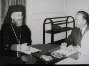 Η φωτογραφία (Αρχείο Αρχιεπισκοπής Κύπρου) από την επίσκεψη του Αρχιεπισκόπου Μακαρίου στην Αθήνα, το 1968 και τις συνομιλίες του με τον Γ. Παπαδόπουλο