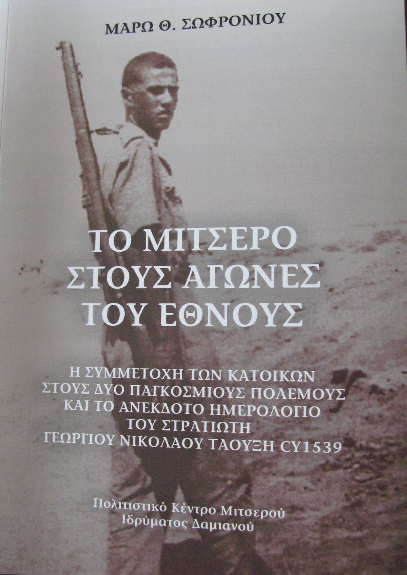 Πρόσφατα κυκλοφόρησε από το Πολιτιστικό Κέντρο Μιτσερού Ιδρύματος Δαμιανού το νέο βιβλίο της Μάρως Σωφρονίου με τίτλο «Το Μιτσερό στους αγώνες του έθνους. Η συμμετοχή των κατοίκων στους δύο παγκόσμιους πολέμους και το ανέκδοτο ημερολόγιο του στρατιώτη Γεώργιου Νικολάου Ταουξή CY 1539». Εκεί η συγγραφέας αποθησαυρίζει αρχειακό υλικό, μαρτυρίες και φωτογραφίες που συγκέντρωσε με πολυετή έρευνα, επιβεβαιώνοντας ότι το Μιτσερό των 450 κατοίκων ήταν από τις κοινότητες με τη μεγαλύτερη συμμετοχή εθελοντών στον Α΄ και στο Β΄ Παγκόσμιο πόλεμο· τρεις εξ αυτών σκοτώθηκαν, και οι τρεις στην Ελλάδα. (Ξεχωριστή συγκίνηση προκαλεί η ιστορία μιας «νύφης του πολέμου» από το Μιτσερό, της Μηλιάς Χατζηθεοδόση – Παστογιωρκή, που παντρεύτηκε Ινδό στρατιώτη τον οποίο και ακολούθησε στη μακρινή του πατρίδα, για να χαθούν τα ίχνη τους στα τέλη της δεκαετίας του 1940, όταν μετά την αποχώρηση των Βρετανών διχοτομήθηκε με αιματηρό τρόπο η Ινδία.)