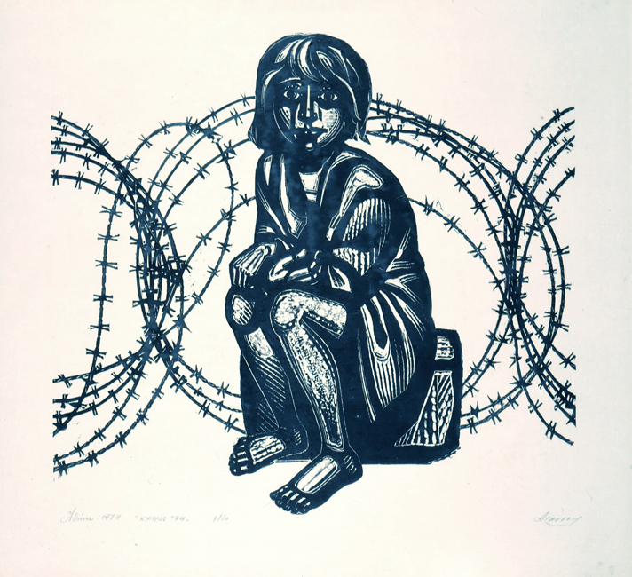 Α. Τάσσος, “Κύπρος 1974”, ξυλογραφία, 1974