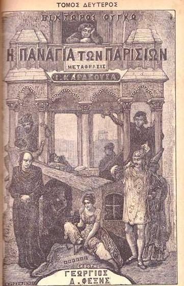 Επιλέγω για το “Περί Ιστορίας”, αντί των αποκρουστικών φωτογραφιών της φωτιάς, τη φωτογραφία του εξωφύλλου της πρώτης έκδοσης της ελληνικής μετάφρασης του έργου του Βίκτωρος Ουγκό, από τον Ιωάννη Καρασού(τ)σα, το 1867. (Πηγή: Ηλεκτρονικός κατάλογος της Εθνικής Βιβλιοθήκης της Ελλάδος).