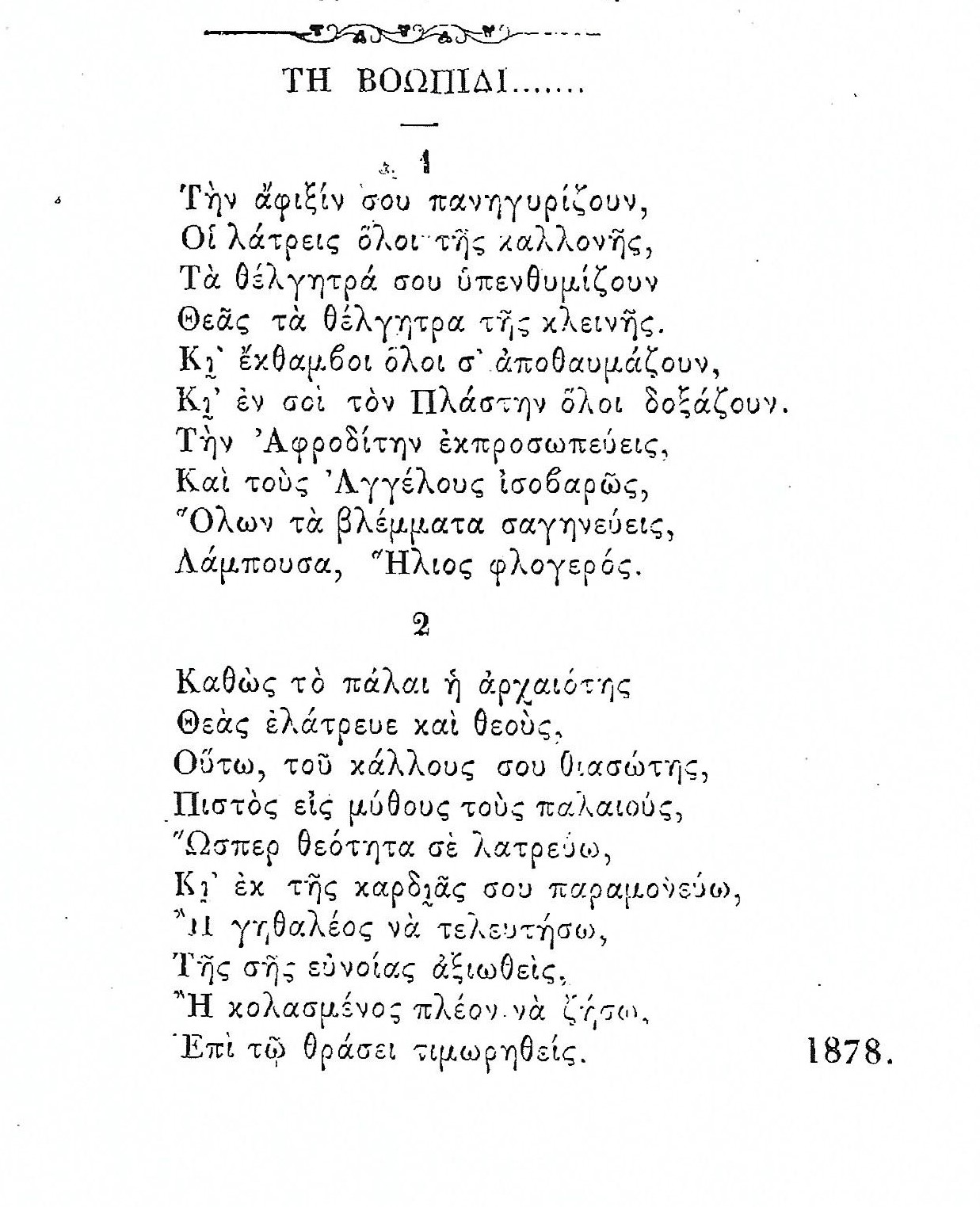 Από τα “Ποιημάτια” του Θ. Ρώπα (Λάρνακα 1879). Ένα από τα κάπως αισιόδοξα ποιήματά του…