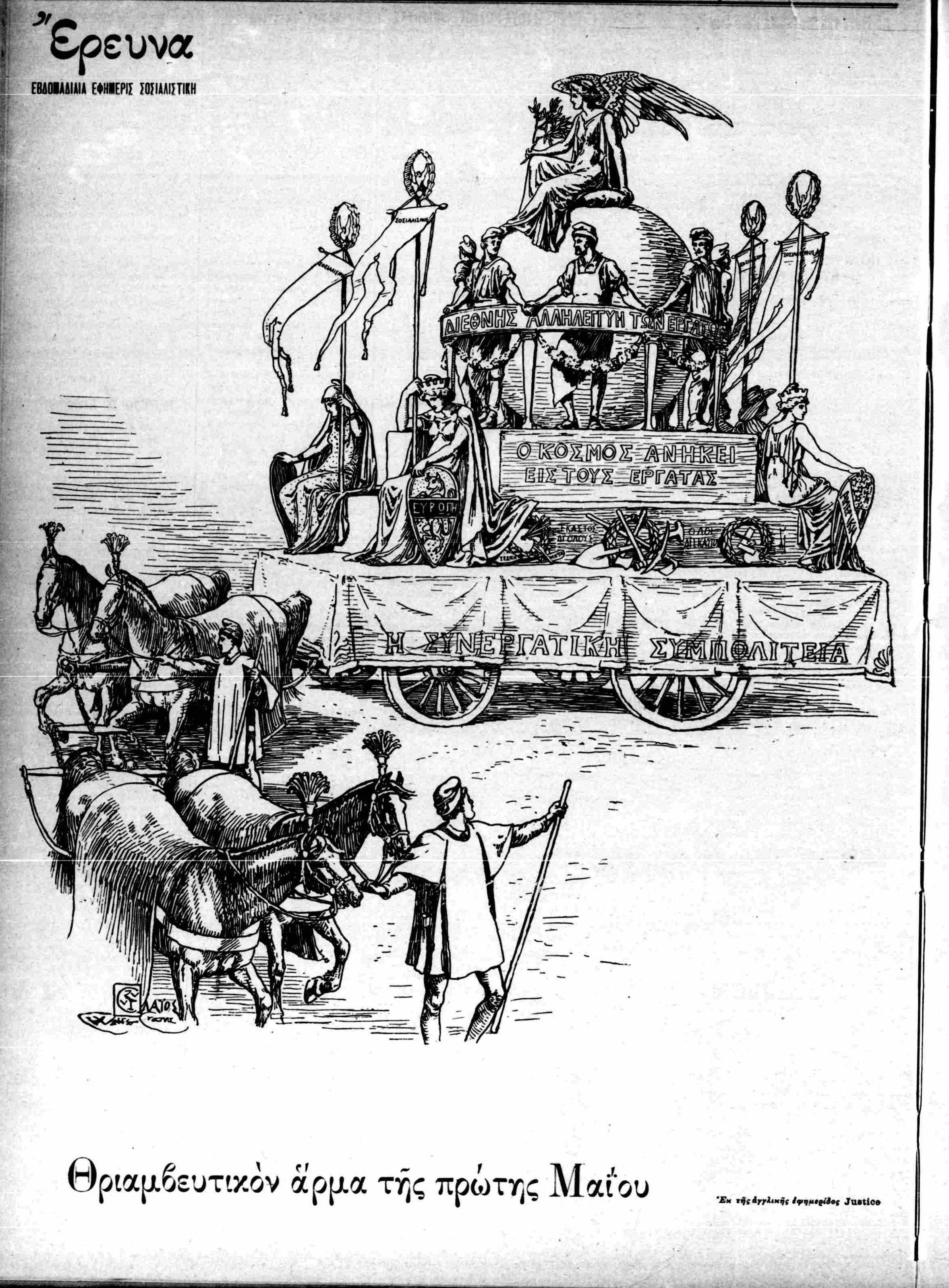 Πρωτοσέλιδο πρωτομαγιάτικο σκίτσο στον Ριζοσπάστη του 1923