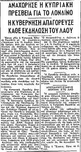 Από τον “Ριζοσπάστη” της 10ης Δεκεμβρίου 1946. Ανάμεσα στην Επιτροπή των Κυπρίων της Αθήνας που ξεπροβόδισαν την “Πρεσβεία” για το Λονδίνο,
