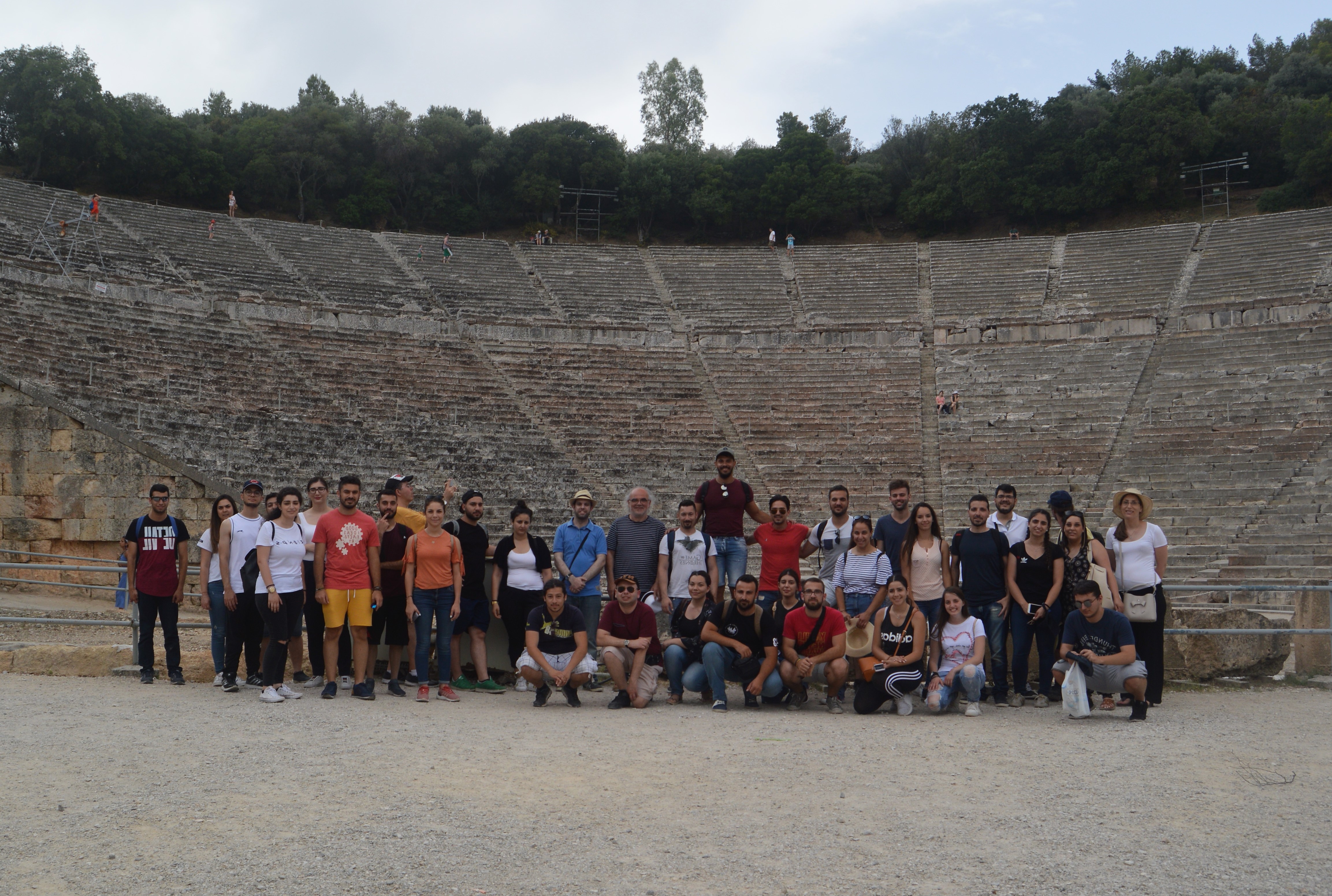 Μετά από μια διακοπή το 2017, τον Ιούνιο του 2018 η εκδρομή μας ήταν στην Πελοπόννησο, στην Πάτρα, τη Μονεμβασιά, τη Μάνη του Καταλάνου και του καπετάν Μαύρου, τη Σπάρτη του Φίλιου Ζαννέτου, την Αγία Λαύρα και τα Καλάβρυτα. Το φοιτητικό συνέδριό μας στο Πανεπιστήμιο Πελοποννήσου, στην Καλαμάτα. Και τέλος, μερικά βράδυα στην Αθήνα. Η φωτογραφία από την Επίδαυρο όπου έλαμψαν οι τολμηροί που απήγγειλαν, τραγούδησαν ή …έψαλλαν (πες τα Χρυσόστομε!) ή μάγεψαν με τη φυσαρμόνικά τους (ευχαριστούμε, Λοΐζο!).
