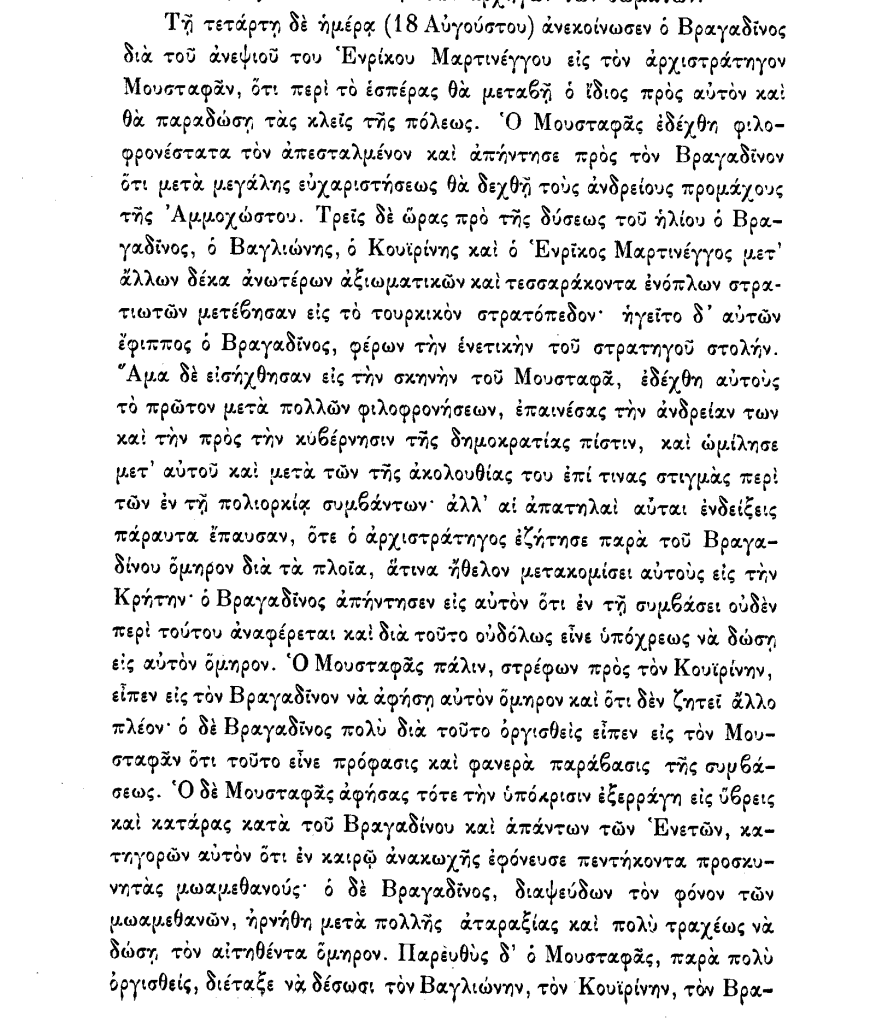 Ο Ερντογάν αντιγράφοντας τις φιέστες του Μουσολίνι και του Χίτλερ εισέρχεται αυτή την ώρα, ως θλιβερή καρικατούρα κατακτητή, στην πόλη της Αμμοχώστου. Μπαίνοντας, μόνο και μόνο για αυτήν την “πανηγυρική” του πράξη, στο πάνθεον και των σφαγέων της ιστορίας. Προηγήθηκε, το 1571, ο Λαλά Μουσταφά με την επονείδιστη βάρβαρη συμπεριφορά του απέναντι στη συμφωνία και στον λόγο που έδωσε στον Μαρκαντώνιο Βραγαδίνο, τον υπερασπιστή της Αμμοχώστου. Ας θυμηθούμε το μαρτυρικό τέλος του Βραγαδίνου, όπως το περιγράφει (σε από τις πιο ήπιες περιγραφές των βασανιστηρίων) ο Αθανάσιος Α. Σακελλάριος στα “Κυπριακά” του, το 1890 (σσ. 554-557).