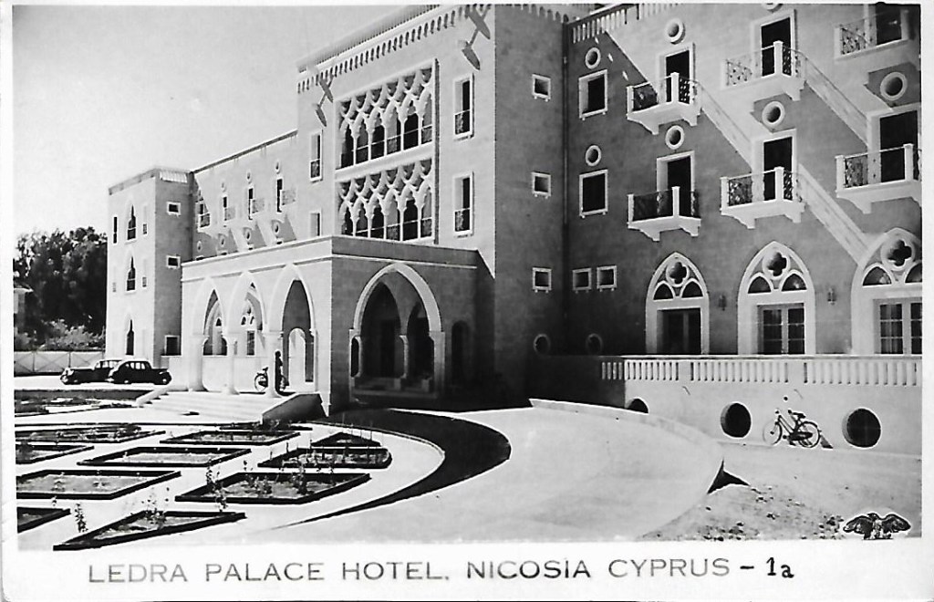 Το Ledra Palace σε μια καρτ ποστάλ του Μανγκογιάν, αρχές δεκαετίας του 1950