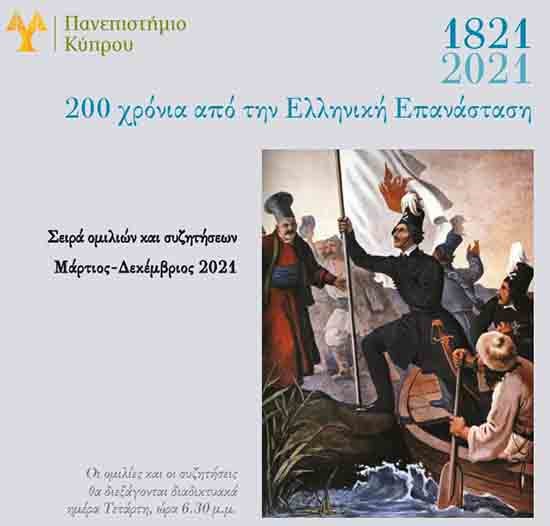 Το Πανεπιστήμιο Κύπρου με αφορμή την επέτειο των 200 χρόνων από την Επανάσταση του 1821, διοργανώνει μια σειρά 19 εκδηλώσεων, με τη συμμετοχή των παρακάτω 41 ομιλητών και ομιλητριών:
