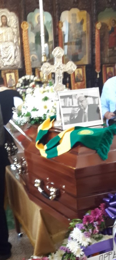 Στο φέρετρό του, σήμερα, στον ναό Αγίου Ανδρονίκου και Αθανασίας, στο Τσέρι, μαζί με τον σταυρό, τη φωτογραφία του και μια μεγάλη ανθοδέσμη από τους οικείους του, το κασκόλ του αγαπημένου του “Ορφέα”…