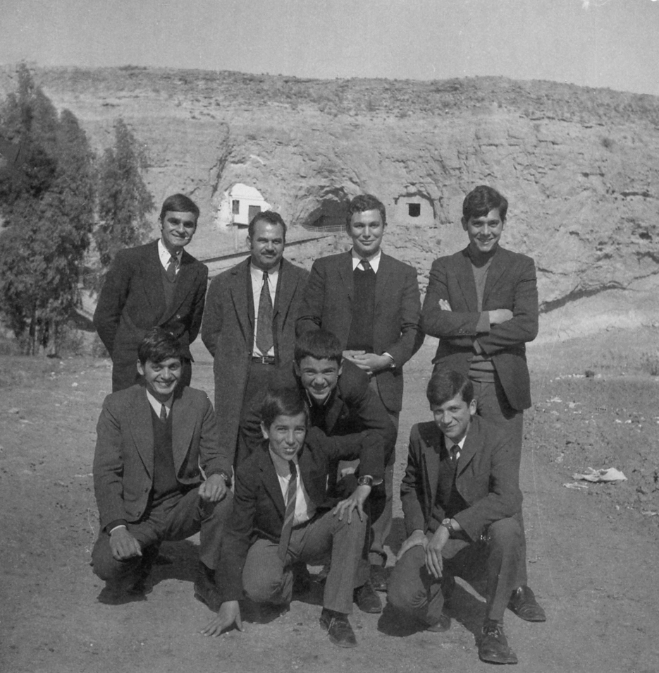 Η φωτογραφία, από τις ελάχιστες που σώθηκαν μετά την εισβολή, είναι από τη συλλογή φωτογραφιών του Δημήτρη Μηνά, σήμερα προέδρου του προσφυγικού σωματείου «Η Λάπηθος», συμμαθητή και παιδικού φίλου του παπαΧαράλαμπου. Είναι από μια ιδιωτική εκδρομή την Άνοιξη του 1973 των μαθητών της «Σχολής Βυζαντινής Μουσικής» του ναού Αγίου Λουκά Λαπήθου, στη Χρυσοσπηλιώτισσα. Στην πάνω σειρά, από αριστερά ο Ανδρέας Ορφανίδης, κατόπιν αρχαιολόγος και πανεπιστημιακός, ο Μιχαλάκης Ευσταθίου, τότε κάτοικος Καραβά, νεωκόρος για δεκαετίες στον Απόστολο Ανδρέα στο Πλατύ, που έφυγε από τη ζωή πριν μερικά χρόνια, ο Πάμπος και ο Μιχάλης Πηγασίου, σήμερα ιερέας στον Άγιο Νικόλαο Έγκωμης. Στη δεύτερη σειρά ο Ανδρέας Αγαπίου, σήμερα ιερέας στη Χρυσελεούσα Στροβόλου και ο γράφων. Και μπροστά, ο Κυριάκος Παπαϊωάννου, από τον Καραβά, αδελφός του πρώην δημάρχου Καραβά, Γιάννη Παπαϊωάννου, και ο Δημήτρης Μηνά.