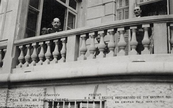 και τέλος, μια φωτογραφία του Κωνσταντίνου, εμφανώς γερασμένου, αλλά χαμογελαστού, στη Σμύρνη, στις 5 Ιουνίου 1921. Μόλις 15 μήνες αργότερα, στα τέλη Αυγούστου 1922, στους ίδιους χώρους ο Μουσταφά Κεμάλ θα επιθεωρούσε, ως νέος πορθητής, τα ερείπια της ιωνικής πρωτεύουσας… Ο Κωνσταντίνος είχε ήδη φύγει από την Ελλάδα οριστικά. Η “νεκρανάσταση του Μαρμαρωμένου βασιλιά” αποδείχθηκε ένα τεράστιο φιάσκο. Το βαρύτατο κόστος θα το πλήρωνε (κυρίως) ο Μικρασιατικός Ελληνισμός.