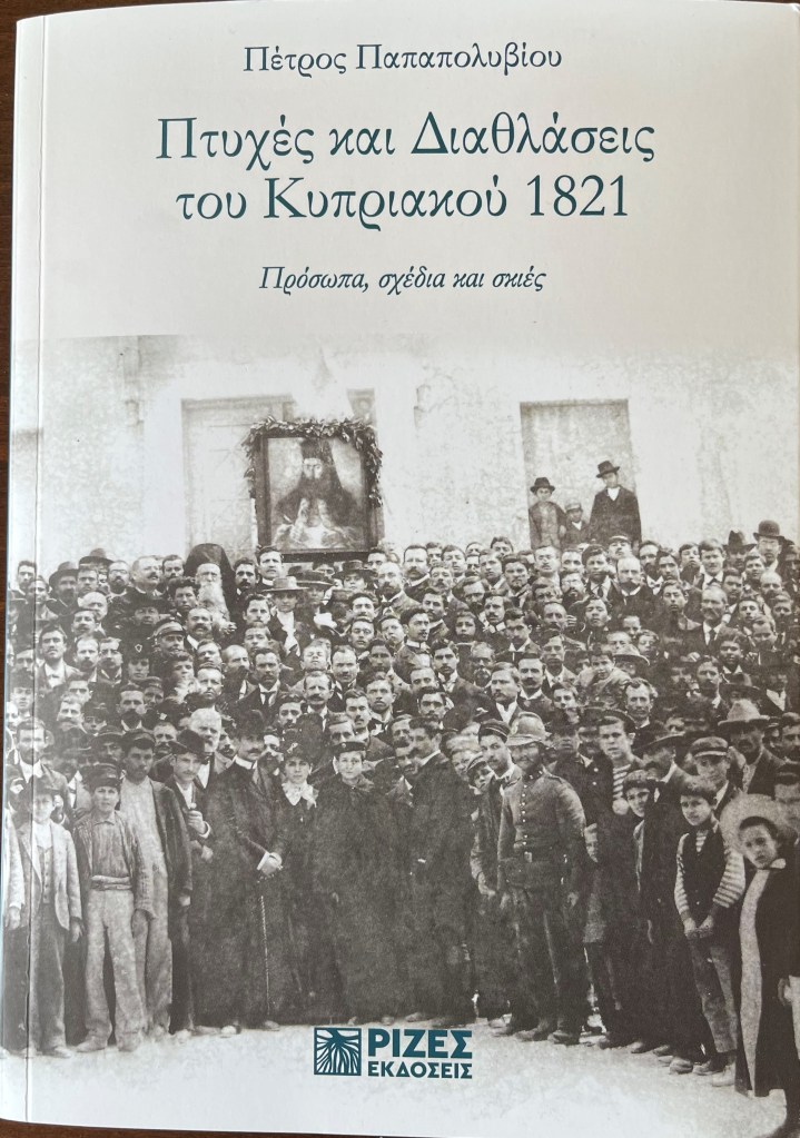 Τυπώθηκε το νέο μου βιβλίο με τίτλο «Πτυχές και διαστάσεις του κυπριακού 1821: Πρόσωπα, σχέδια και σκιές» (Λευκωσία: Ρίζες, 2022, σελ. 446). Το βιβλίο κυκλοφορεί μετά την ολοκλήρωση της επετείου των διακοσίων χρόνων από την έναρξη της Ελληνικής Επανάστασης, αλλά γεννήθηκε και διαμορφώθηκε ως εκδοτική ιδέα πριν από το 2021. Δεν αποτελεί την ιστορία της κυπριακής συμβολής στην Επανάσταση, αλλά μια σύνθεση μελετημάτων, τόσο για τη συμμετοχή των Κυπρίων στο 1821, όσο και για τον απόηχο και τους συμβολισμούς του στη μεγαλόνησο, τους τελευταίους δύο αιώνες. Πέρα από τον Πρόλογο, την Εισαγωγή και τα Ευρετήρια, αποτελείται από τέσσερα μέρη και το Επίμετρο, και συνολικά 14 υποκεφάλαια, τα εξής: