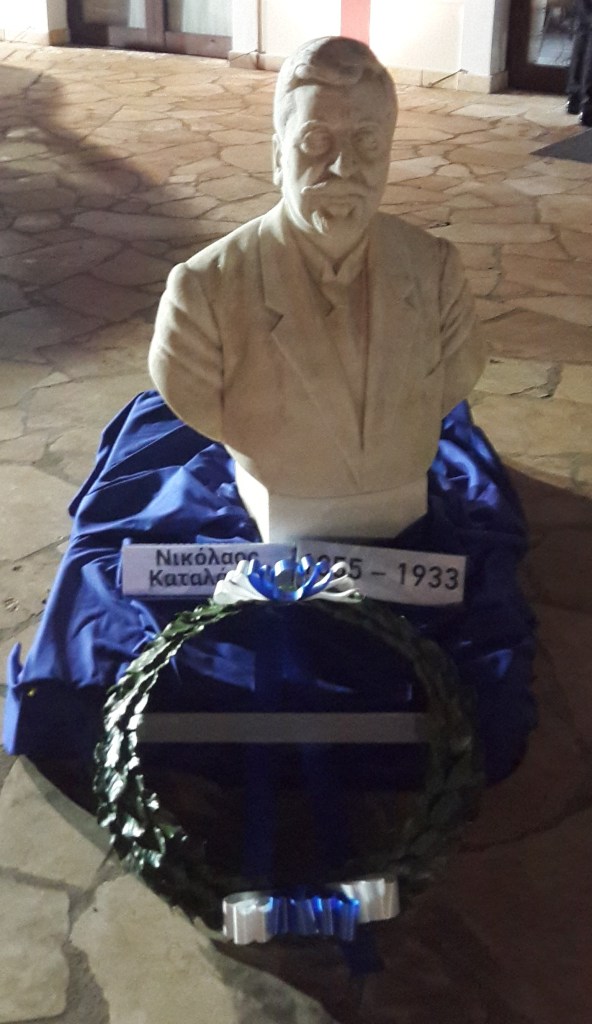 Στη φωτογραφία το πάνω μέρος της προτομής του Νικόλαου Καταλάνου σε εκδήλωση στη Λάρνακα, τον Δεκέμβριο του 2019. Η προτομή μέχρι να αρχίσουν τα έργα που άλλαξαν εντελώς την όψη της κεντρικής πλατείας της Λευκωσίας δέσποζε στο κέντρο της Πλατείας Ελευθερίας. Έκτοτε, δηλαδή εδώ και χρόνια, δεν έχει βρει μόνιμη θέση….