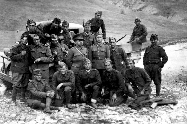Μια ομάδα “παιδιών” του Ελληνοϊταλικού πολέμου, στο δρόμο για το μέτωπο, στις αρχές του 1941. Στο κέντρο, με το πηλίκιο του αξιωματικού, ο Ανδρέας Δρουσιώτης, από τη Λεμεσό, έφεδρος ανθυπασπιστής των Διαβιβάσεων. Συνέχισε τη δράση του στην Αντίσταση και σκοτώθηκε πολεμώντας στην Πιερία, τον Οκτώβριο του 1944, ως ανθυπολοχαγός του ΕΛΑΣ. (Αρχείο οικογένειας Γιαννάκη Δρουσιώτη, Λεμεσός.)