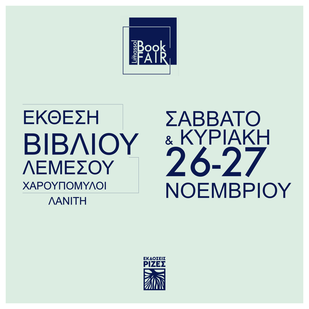 Στο περίπτερο των εκδόσεων “Ρίζες”, όπου παρουσιάζονται και ορισμένα από τα βιβλία μου, θα βρίσκομαι και εγώ, την Κυριακή 27 Νοεμβρίου, για να συναντηθούμε με τους φίλους και τις φίλες που ζουν στη Λεμεσό. Τα λέμε εκεί!