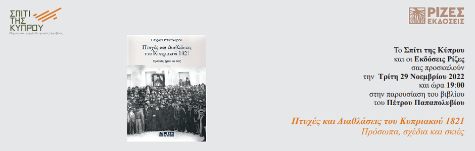 Παρακολουθείστε σήμερα, 29 Νοεμβρίου 2022, στο διαδίκτυο την παρουσίαση του βιβλίου μου “Πτυχές και διαθλάσεις του κυπριακού 1821: Πρόσωπα, σχέδια και σκιές” (Λευκωσία, Ρίζες, 2022).