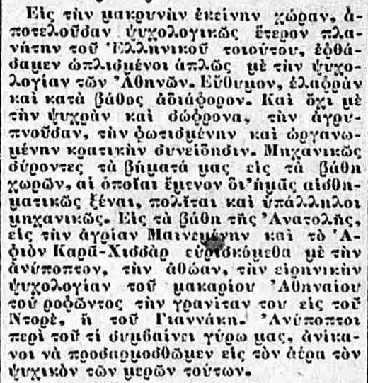 Το 1923 η «Πατρίς» ήταν καθημερινή πρωινή εφημερίδα και είχε διευθυντή τον Γεώργιο Λαμπρίδη, ο οποίος υπέγραφε το πρωτοχρονιάτικο πρωτοσέλιδο κύριο άρθρο με τίτλο: «Η μεγάλη γραμμή της ελληνικής ιστορίας το 1922. Η έλλειψις κρατικού ιδανικού». Ο αρθρογράφος υποστήριζε ότι «ο Έλλην δεν εσχημάτισεν ακόμη έννοιαν Κράτους εις τον νουν του», ούτε «ο απλούς ελληνικός κόσμος», ούτε «η μορφωμένη τάξις του πληθυσμού του Ελληνικού Βασιλείου». Κι ούτε κατάφερε να δημιουργήσει «πάγιον, ισχυρόν και αυτοτελή κλάδον διοικητικών υπαλλήλων, ενός δευτέρου τρόπον τινά πατώματος του οικοδομήματος του Κράτους, εάν εις το πρώτον τοποθετήσωμεν τους ανθρώπους της πολιτικής και γενικούς τους δημοσίους ανθρώπους». Και, σε μια ενδιαφέρουσα αυτοκριτική, απέδιδε τη μόλις προηγηθείσα Μικρασιατική τραγωδία στη λανθασμένη νοοτροπία, «την ψυχολογίαν των Αθηνών» όπως την γράφει, με την οποία η Ελλάδα έφτασε «εις την μακρυνήν εκείνην χώραν». Το ακριβές απόσπασμα: