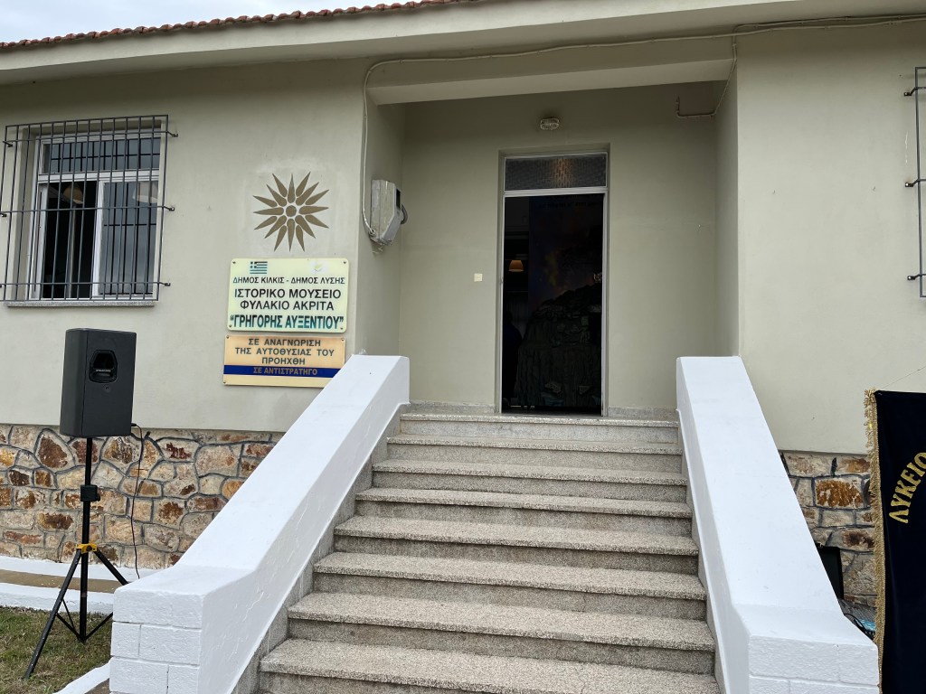 Σε απόσταση 25 χιλιομέτρων από το Κιλκίς, στο χωριό Ακρίτας, βρίσκεται ένα εγκαταλειμένο σήμερα φυλάκιο του τότε 613 Τάγματος Πεζικού, όπου κατά το 1950-1951 υπηρέτησε ως ανθυπολοχαγός – διοικητής του φυλακίου ο Γρηγόρης Αυξεντίου (1928-1957), ο κατοπινός ήρωας του ολοκαυτώματος του Μαχαιρά. Το φυλάκιο που φιλοξενούσε στα μετεμφυλιακά χρόνια μια διμοιρία στρατιωτών μετατράπηκε εδώ και μερικά χρόνια, με μπόλικο μεράκι και αγάπη, σε ένα εντυπωσιακό σε εκθέματα, κειμήλια, διοράματα, όπλα και στρατιωτικά αντικείμενα εποχής και φωτογραφίες «Μουσείο Γρηγόρη Αυξεντίου» (φωτ. 6). Από τα μικροαντικείμενα, ξεχώρισα το τάβλι, που κατά την παράδοση έπαιζε ο Αυξεντίου με τους κατοίκους του Ακρίτα, με χαραγμένη την επιγραφή στο εξωτερικό του, «Ελλάς – Κύπρος – Ένωσις».