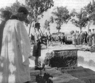 Η φωτογραφία από την κηδεία της μεγαλύτερης ομάδας θυμάτων της πυρκαγιάς, στις 20 Ιουνίου 1956 στη Λευκωσία.