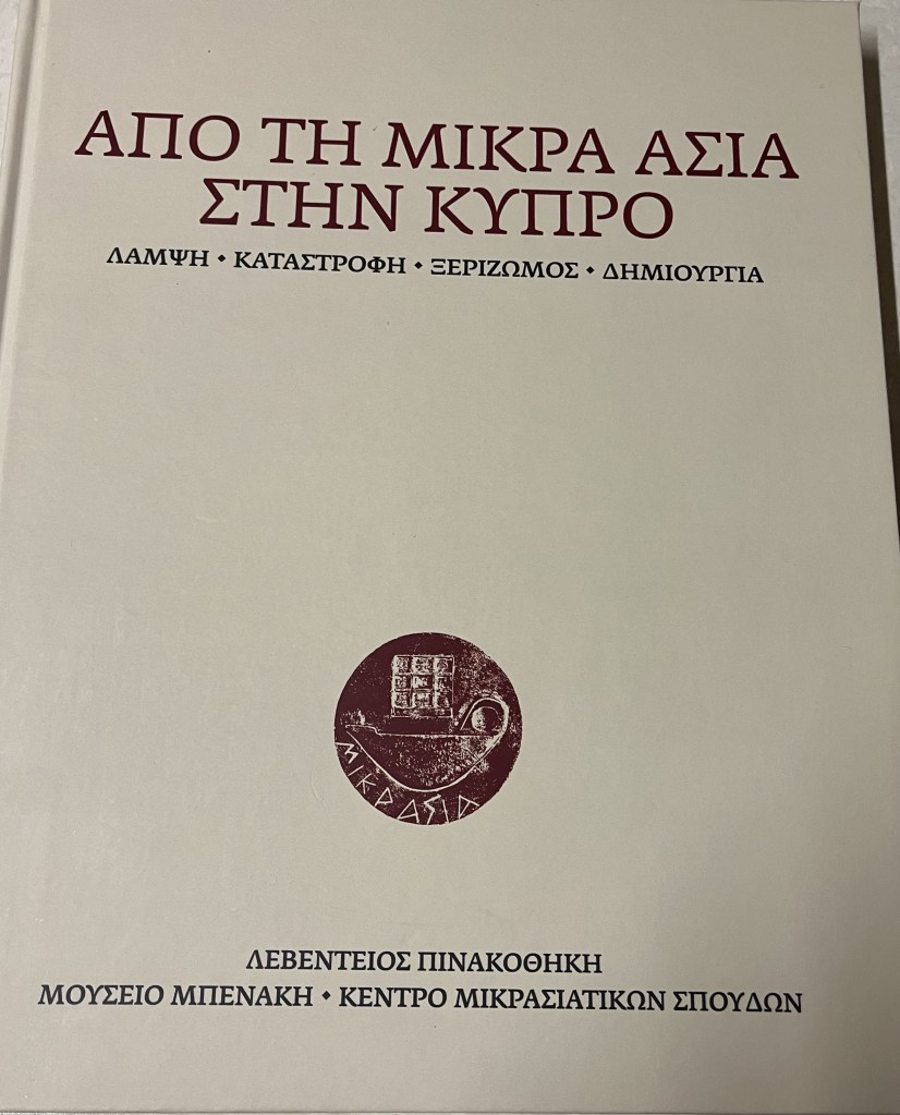 Παράλληλα, κυκλοφόρησε και ο Κατάλογος της Έκθεσης, στα ελληνικά και αγγλικά, με πλούσιο φωτογραφικό υλικό. Στον τόμο περιλαμβάνεται και το άρθρο μου “”Η Μικρασιατική Καταστροφή και η Κύπρος”.