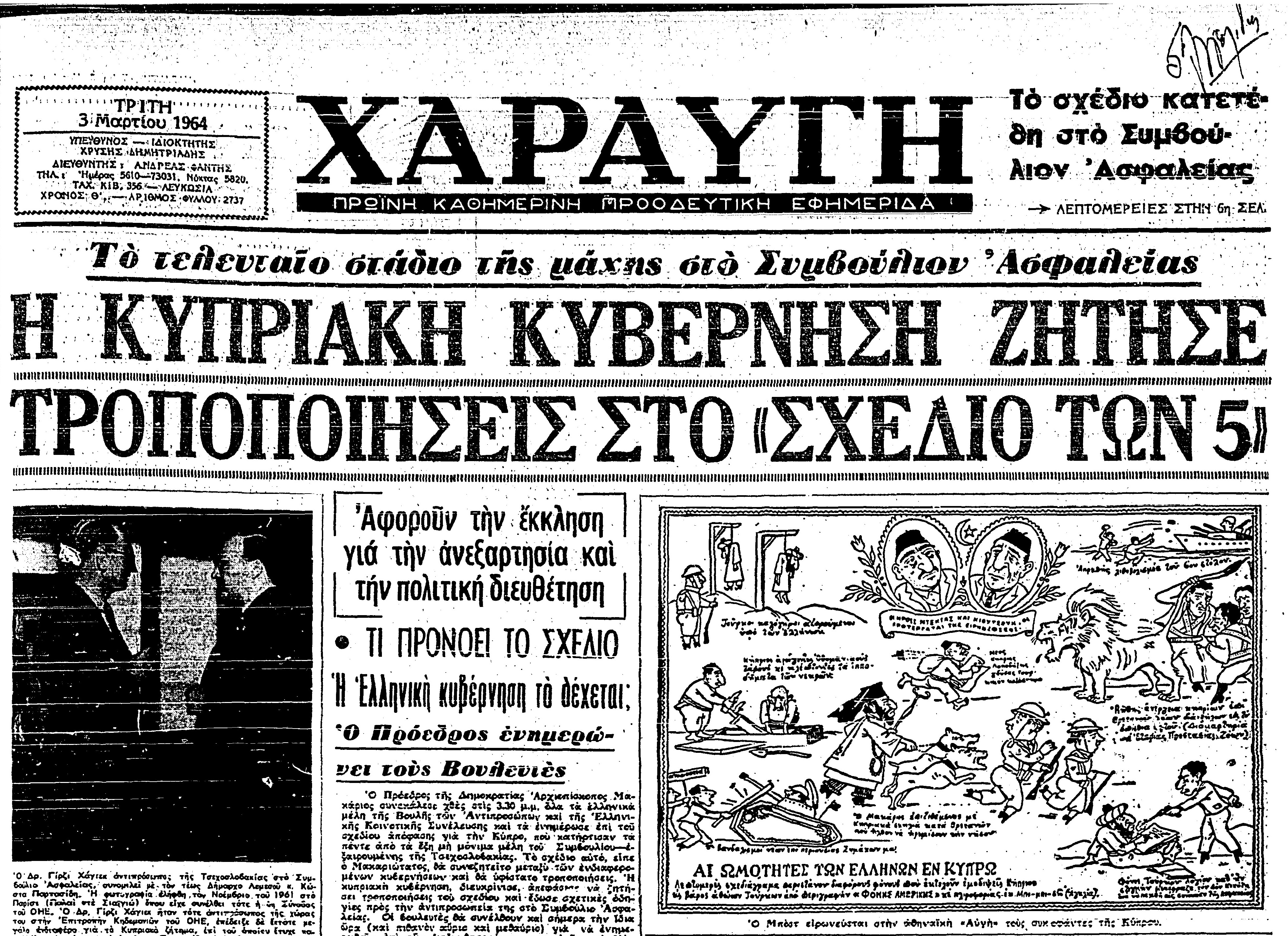 Πριν από εξήντα χρόνια, τον Μάρτιο του 1964, είχε κορυφωθεί σε διεθνές επίπεδο η συζήτηση για τις δραματικές εξελίξεις στο Κυπριακό, που είχε ξεκινήσει από τα γεγονότα της 21ης Δεκεμβρίου 1963, τις επακολουθήσασες ελληνοτουρκικές συγκρούσεις στο νησί, την αποχώρηση των Τουρκοκυπρίων πολιτειακών και πολιτικών παραγόντων από τις αρχές της Κυπριακής Δημοκρατίας και τον εγκλεισμό στους θυλάκους, τη χάραξη της «Πράσινης Γραμμής» στη Λευκωσία και τη συστηματική τουρκική προπαγάνδα για τις «ελληνικές ωμότητες στην Κύπρο». Όλα αυτά, στο παρασκήνιο της έγκρισης του Ψηφίσματος 186 του Συμβουλίου Ασφαλείας του ΟΗΕ, του τόσο σημαντικού στην ιστορία του Κυπριακού.