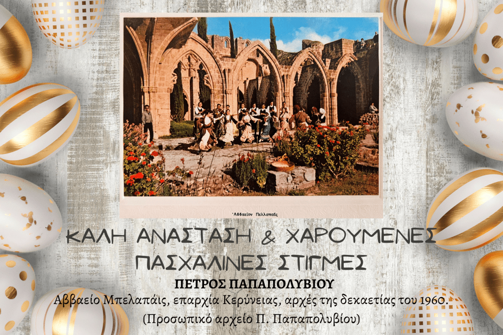 Οι φετινές πασχαλινές ευχές μου συνοδεύονται από μια καρτ ποστάλ του Αββαείου του Μπέλλαπάις, των αρχών της δεκαετίας του 1960.