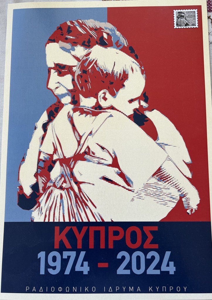 Για τα πενήντα χρόνια από το πραξικόπημα και την τουρκική εισβολή του 1974 κυκλοφόρησαν τους τελευταίους μήνες διάφορες αφίσες. Εδώ μια από τις πρώτες της χρονιάς και από τις πιο καλαίσθητες, η επετειακή αφίσα του Ραδιοφωνικού Ιδρύματος Κύπρου (ΡΙΚ).