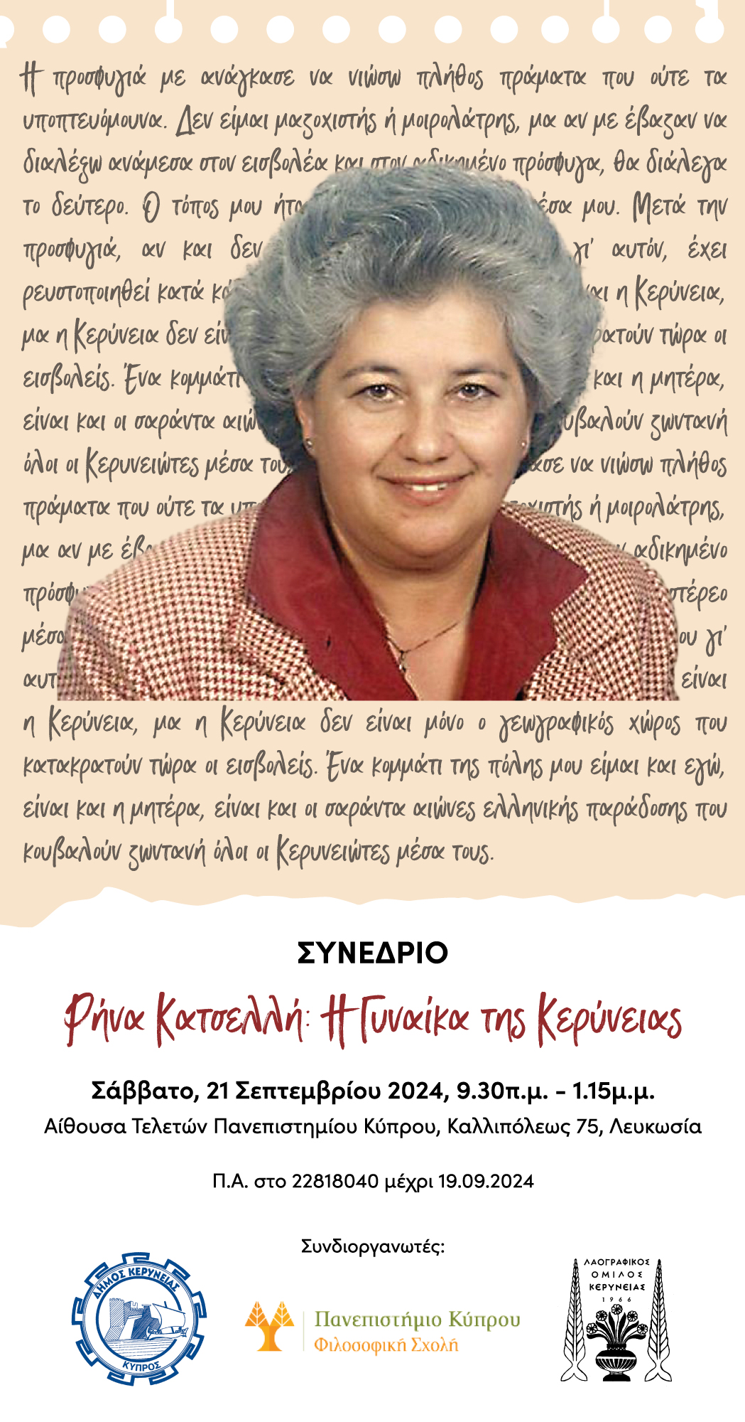 Συνέδριο για τη Ρήνα Κατσελλή, Λευκωσία 21 Σεπτεμβρίου 2024