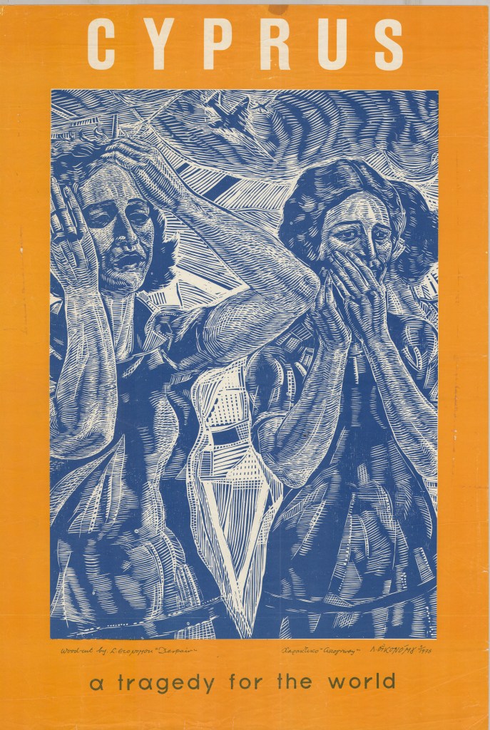 Στην αφίσα, από τη συλλογή αφισών του Εθνικού Ιστορικού Μουσείου, Αθήνα, χαρακτικό του Λ. Οικονόμου (1976) με τίτλο “Απόγνωση”.