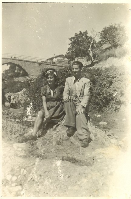 Ο Μουσταφά Σακίρ, Τουρκοκύπριος στρατιώτης του «Κυπριακού Συντάγματος», δραπέτης από τα χέρια των Γερμανών, ύστερα από πολλές περιπέτειες βρήκε άσυλο στη Βέροια, στο σπίτι της οικογένειας του Ηρακλή και της Σοφίας Χαραλάμπους. Εδώ φωτογραφίζεται, το 1941-1942, με τη θυγατέρα της οικογένειας που τον φιλοξενούσε κάτω από την πέτρινη γέφυρα Καραχμέτ στον Τριπόταμο, στο κέντρο της Βέροιας, στην περιοχή Μπαρμπούτα. (Η φωτογραφία μου παραχωρήθηκε από τον ίδιο.)