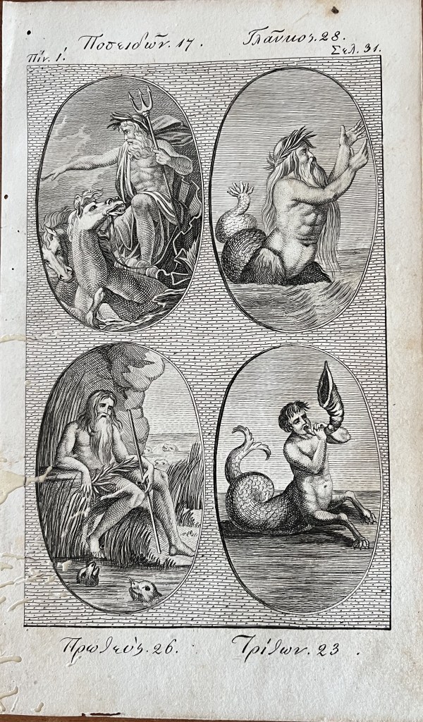 Η φωτογραφία είναι από την εικονογράφηση του Β΄ τόμου της Ωγυγίας (1816): Ποσειδών, Γλαύκος, Πρωτεύς και Τρίτων (Από τη συλλογή μου)