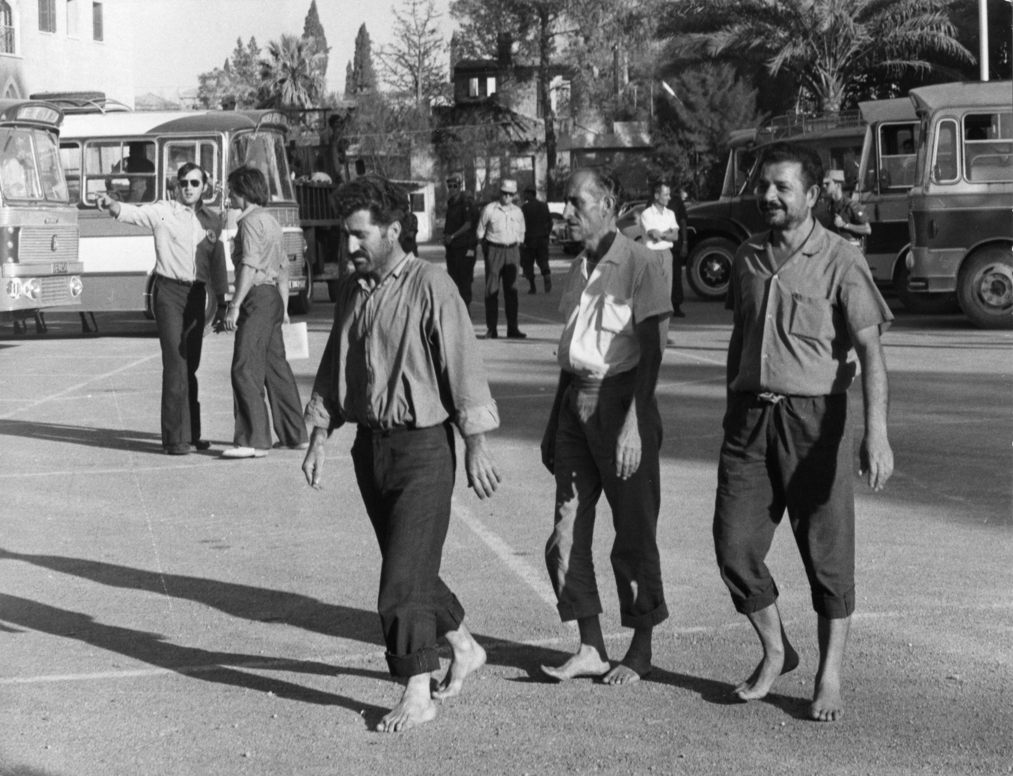 Στη φωτογραφία (Γραφείο Τύπου και Πληροφοριών) Έλληνες Κύπριοι αιχμάλωτοι επιστρέφουν από τις τουρκικές φυλακές (Οκτώβριος 1974)