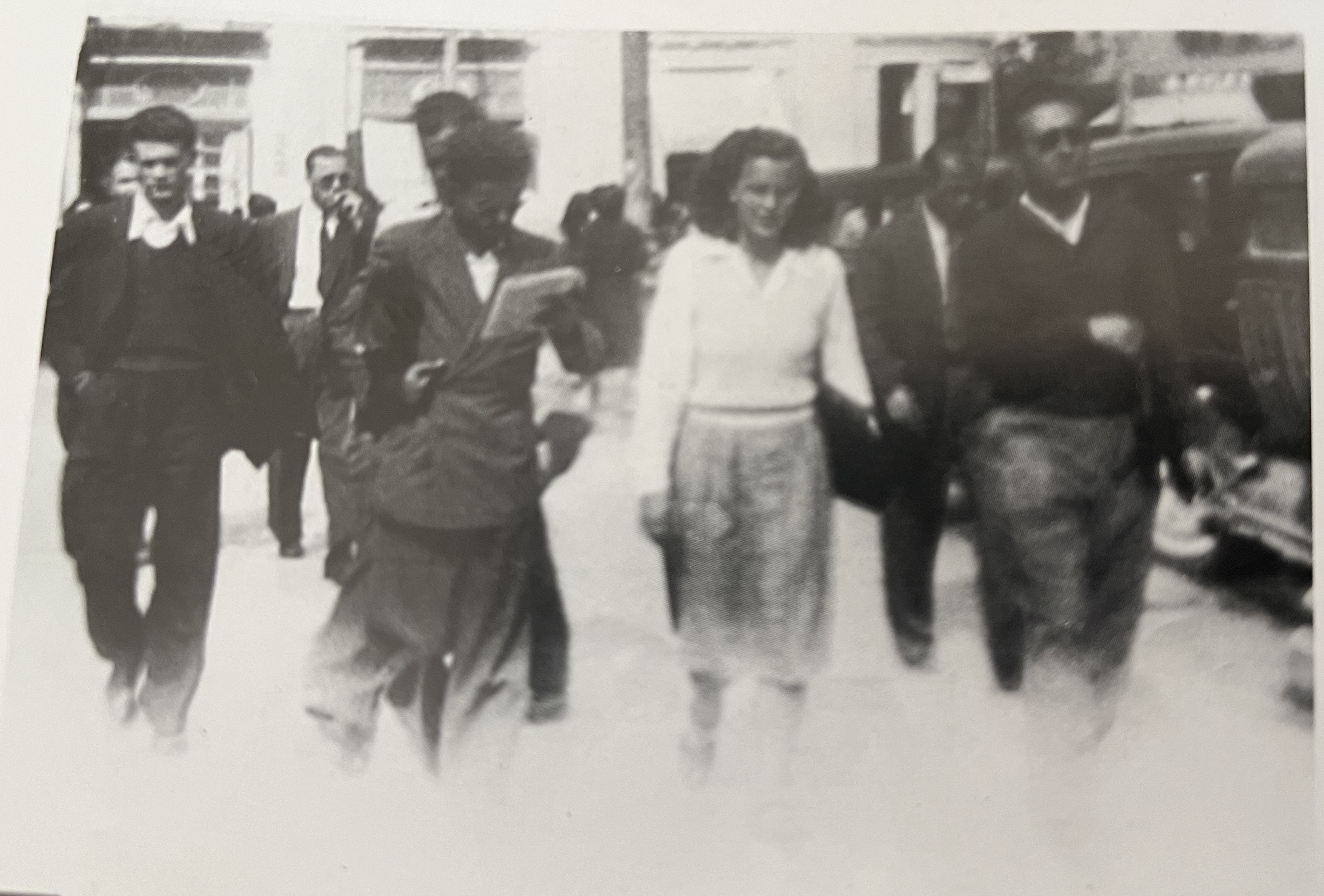 Η Ελένη Γλύκατζη, φοιτήτρια στο Ιστορικό Αρχαιολογικό Τμήμα του Πανεπιστημίου Αθηνών. Αριστερά ο συμφοιτητής της Κώστας Π. Κύρρης.